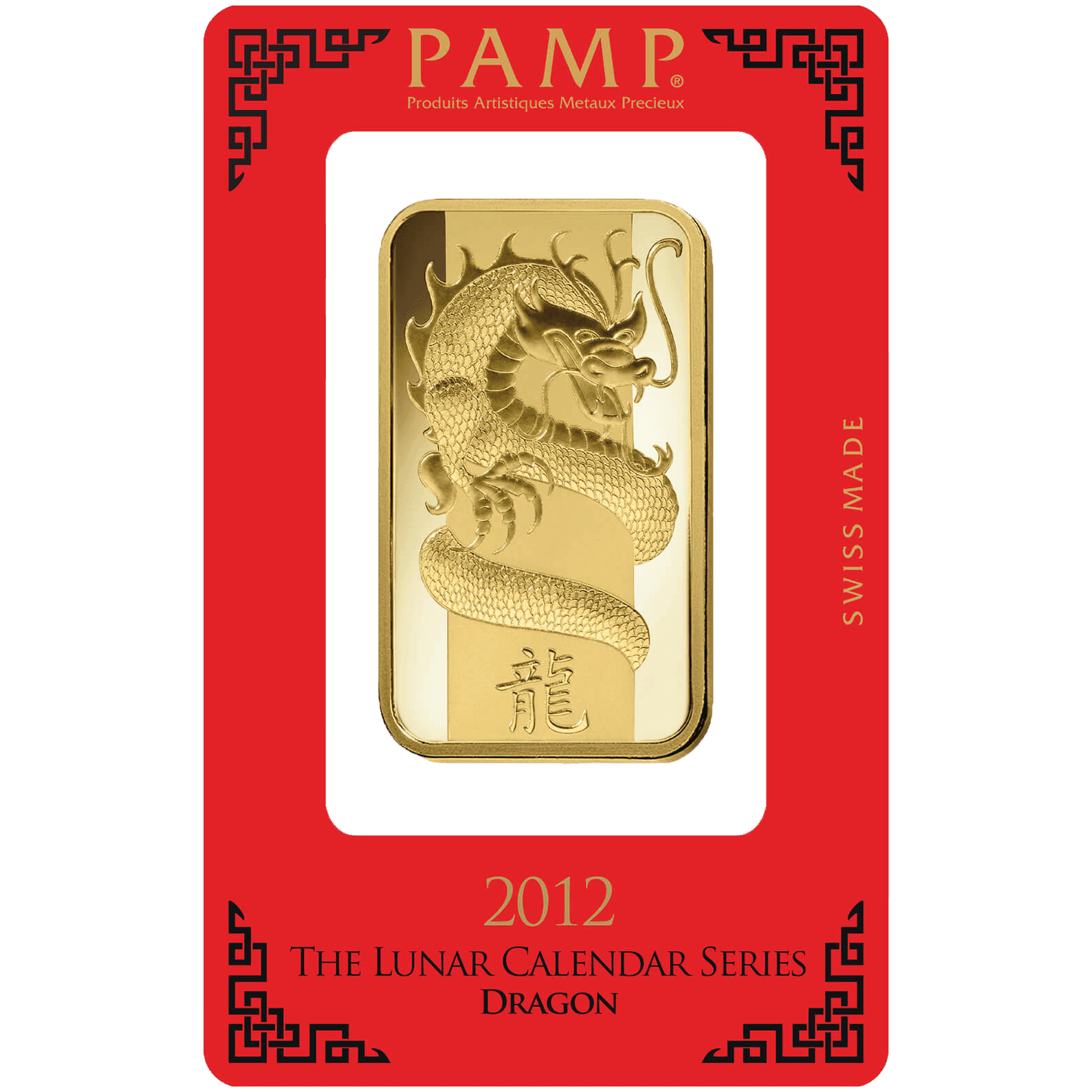 En commémoration du Nouvel An chinois, l'édition 2012 de la populaire série du calendrier lunaire de PAMP, célèbre l'Année du Dragon avec un superbe design de lingotin qui reflète brillamment les qualités attribuées à l’animal par la culture chinoise.