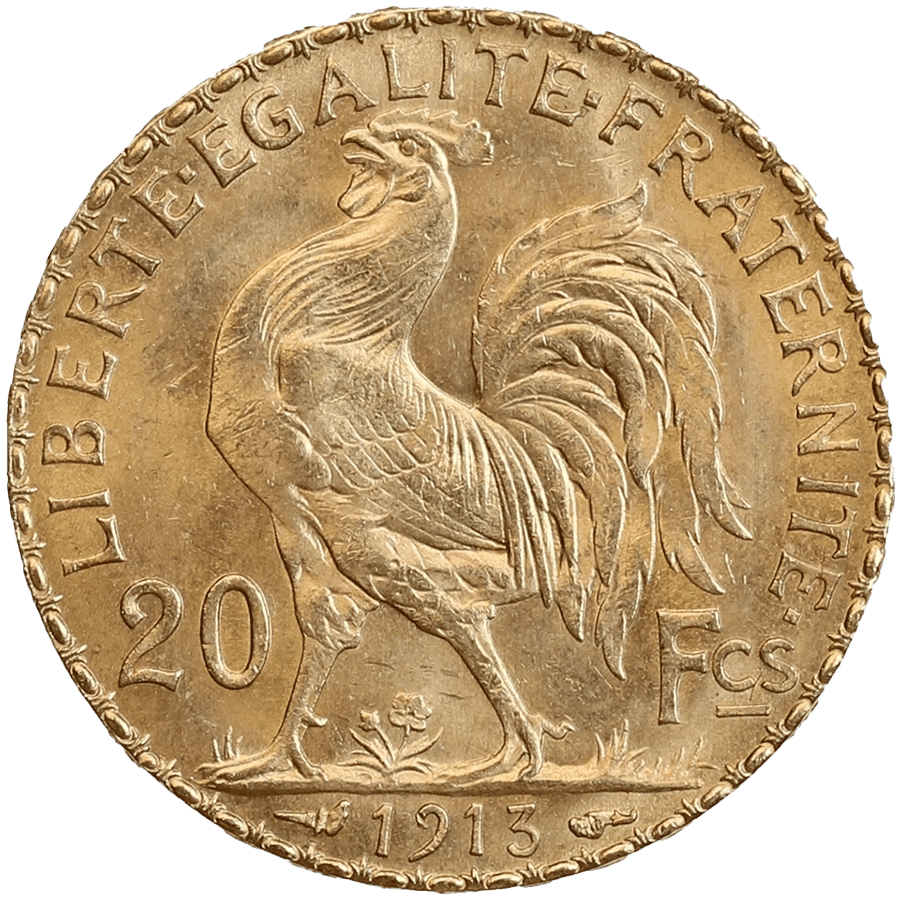 - Revers: Représente le fier Coq gaulois, l'emblème de la France, entouré des mots “LIBERTÉ ÉGALITÉ FRATERNITÉ” et de la date “1913.”