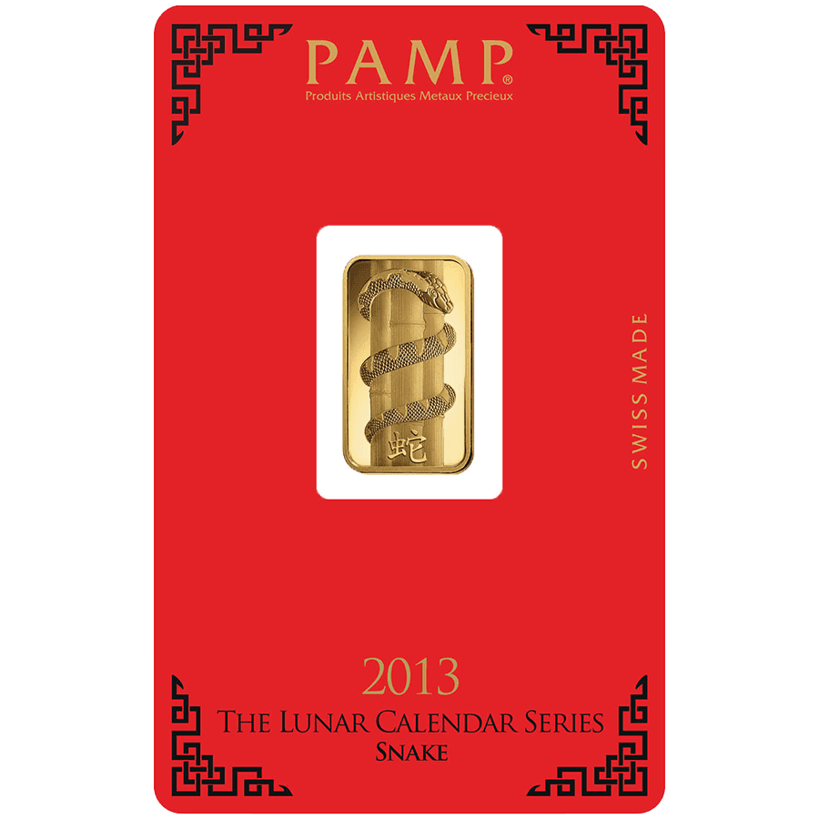 En commémoration du Nouvel An chinois, l'édition 2013 de la populaire série du calendrier lunaire de PAMP, célèbre l'Année du Serpent avec un superbe design de lingotin qui reflète brillamment les qualités attribuées à l’animal par la culture chinoise.