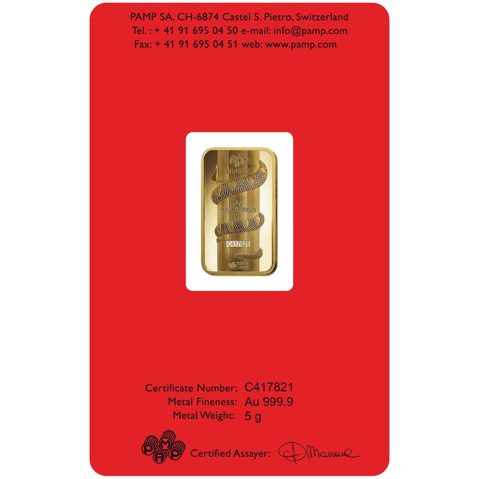 5 grammes Lingotin d'Or - PAMP Suisse Lunar Serpent