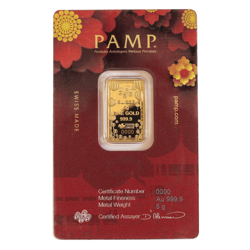 5 gram Fine Gold Bar 999.9 - PAMP Suisse Good Luck Chinese New Year