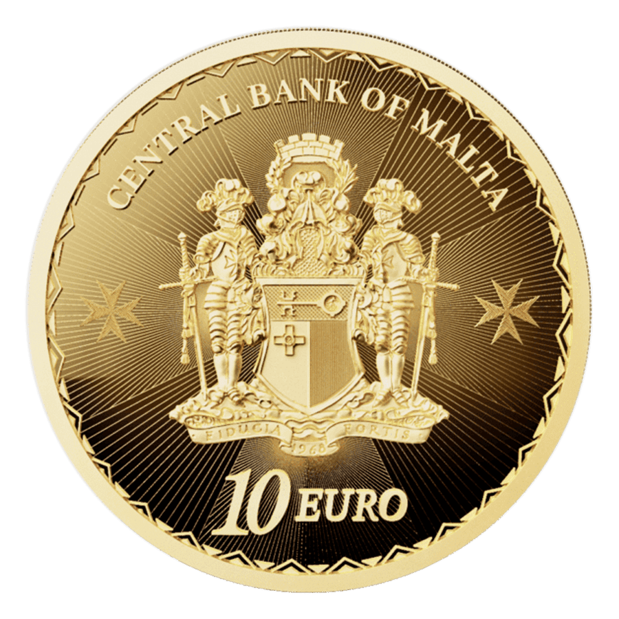 - Revers : Affiche l’emblème officiel de la Banque Centrale de Malte, accompagné de la valeur faciale de 10 € ainsi que des spécifications telles que le poids et la pureté.