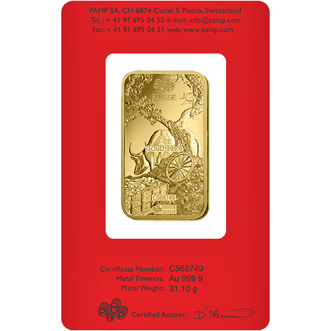 1 once Lingot d'Or - PAMP Suisse Lunar année du bœuf