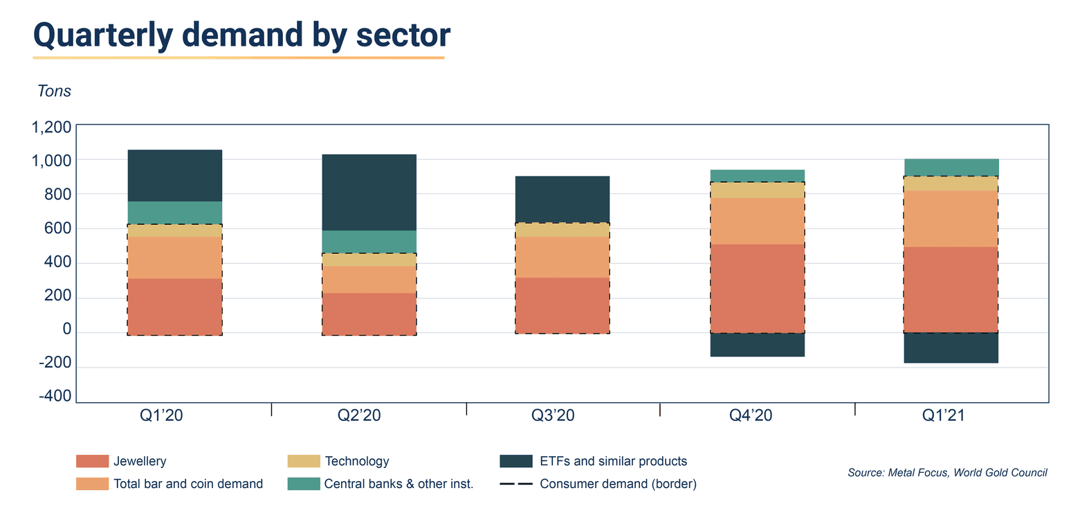 Nel primo trimestre del 2021, la domanda di oro fisico da parte dei consumatori è aumentata, con una crescita del 36% su base annua degli investimenti in lingotti e monete. Date un’occhiata al grafico.