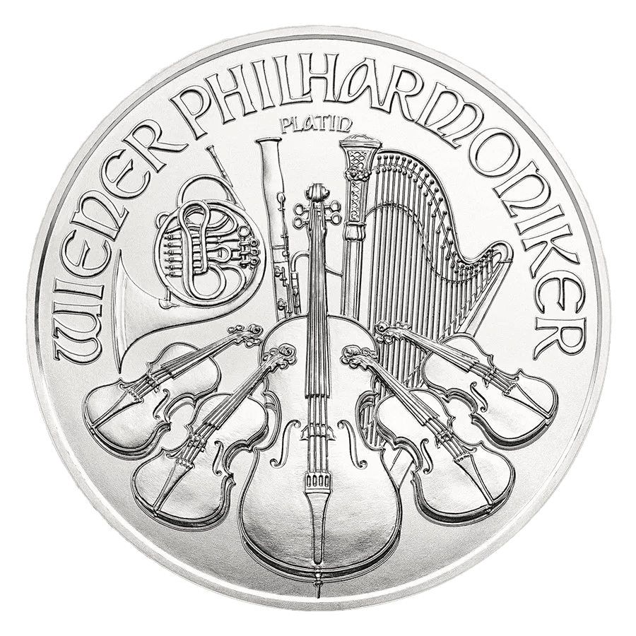 La moneta di platino da un'oncia (oz), ovvero 31,10 grammi (g), è stata coniata in onore della leggendaria Orchestra Filarmonica di Vienna. Sono considerate una delle monete più conosciute al mondo, e per diversi anni non consecutivi sono state anche le monete d'oro più vendute al mondo.