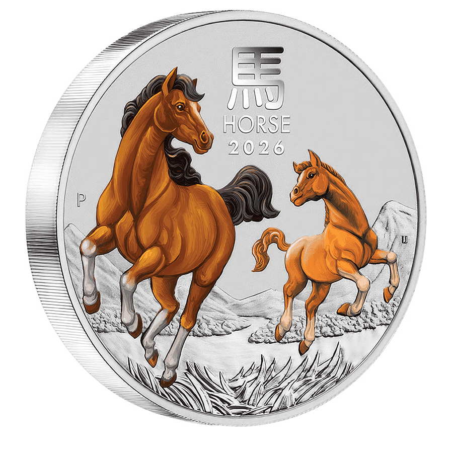 1 kg Moneta d’Argento - Cavallo Lunar australiano 2026 colorato