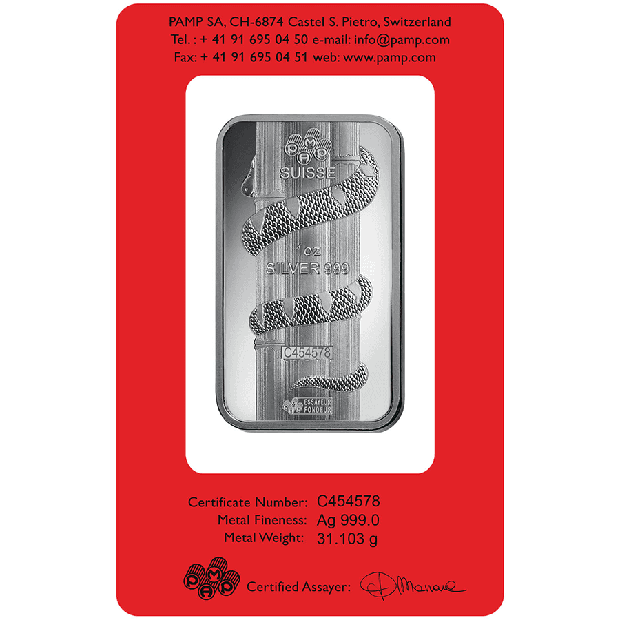1 oncia Lingottino d'Argento - PAMP Suisse Serpente Lunare