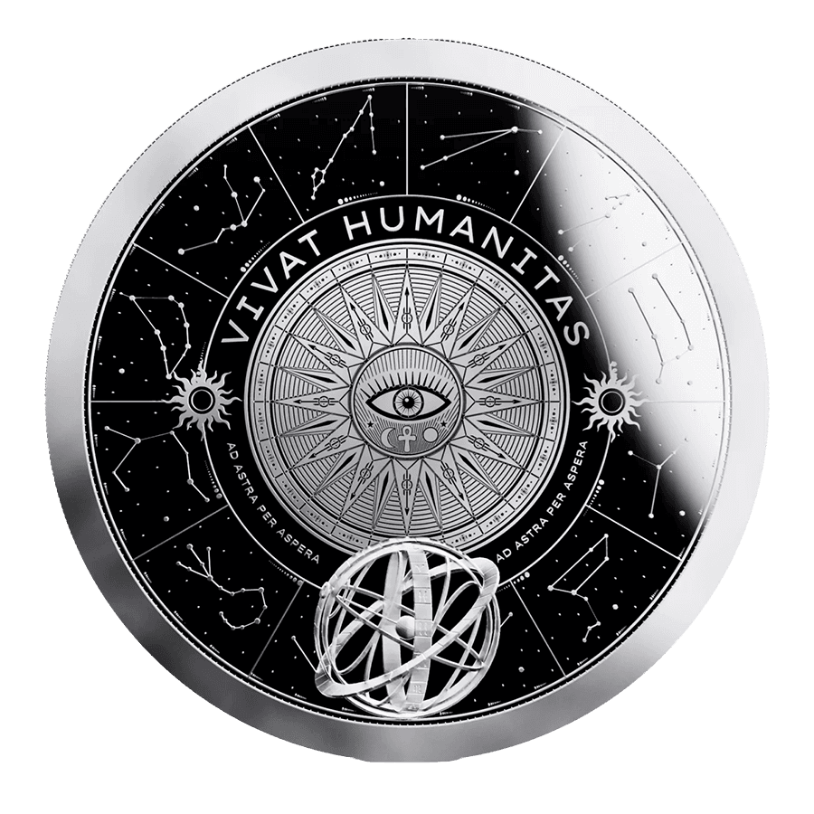 Questa moneta rende omaggio al progresso umano e all’eterna fascinazione per le stelle. Un connubio perfetto tra ispirazione e metallo prezioso, che unisce la saggezza del passato all’esplorazione moderna. Grazie al peso di 1 oncia di argento puro 999,9, rappresenta un’ottima opportunità per diversificare il proprio patrimonio con un design che celebra qualcosa di più grande di noi stessi: il potenziale umano. Ideale per chi apprezza sia il significato simbolico sia il valore duraturo.