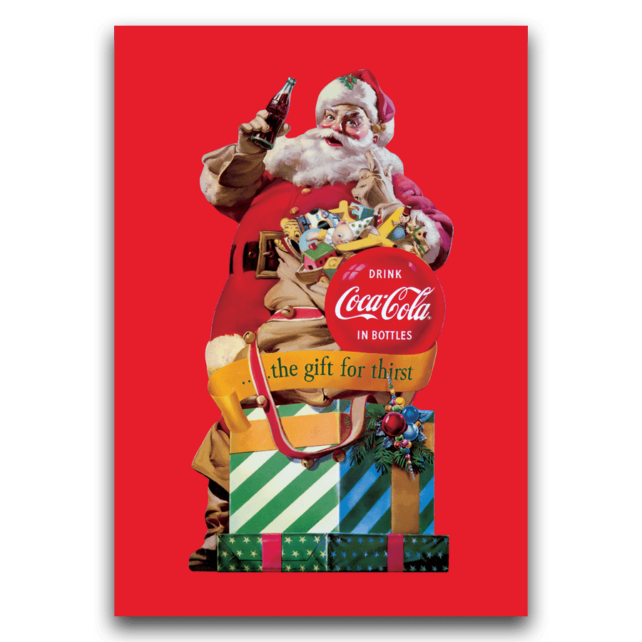 - Rovescio: raffigura Babbo Natale che beve una Coca-Cola, con un piede su un baule, e con in mano un cartello con il logo Coca-Cola.