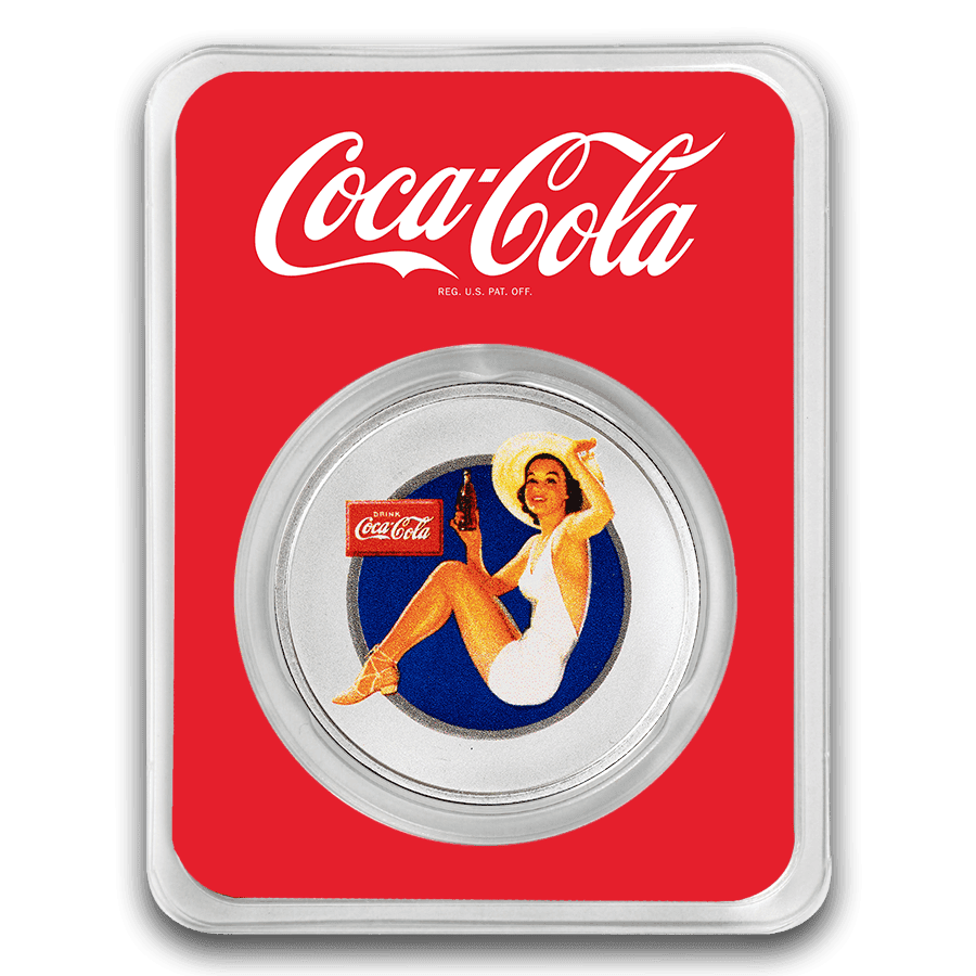 Questa nostalgica moneta rotonda in argento colorato da 1 oz celebra le iconiche pubblicità Coca-Cola degli anni ‘30-'40, con un classico disegno richiamante le pin-up in costume dell’epoca. Racchiusa in una confezione TEP sicura e in stile vintage, è un oggetto da collezione o un regalo perfetto per i fan della Coca-Cola e i collezionisti di monete in argento. Un pezzo che non può davvero mancare in nessuna collezione!