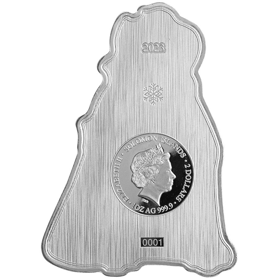Il rovescio della moneta d’argento Mouse King da 1 oncia sfoggia un design di grande fattura e riporta informazioni importanti come la data (2023) e il numero di serie.