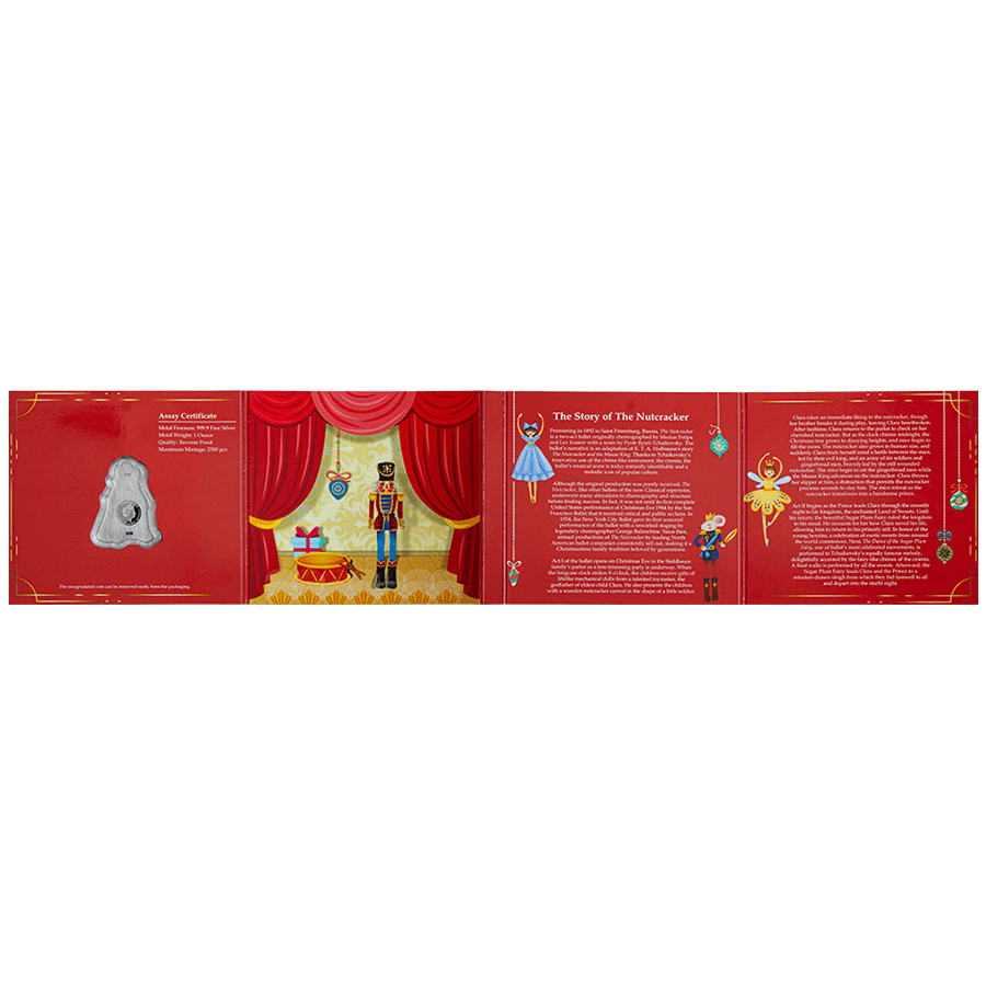 La moneta d’argento da 1 oncia Mouse King (Re dei topi) è un pezzo da collezione creato appositamente per gli appassionati del leggendario balletto, di cui incarna fascino e tradizione.