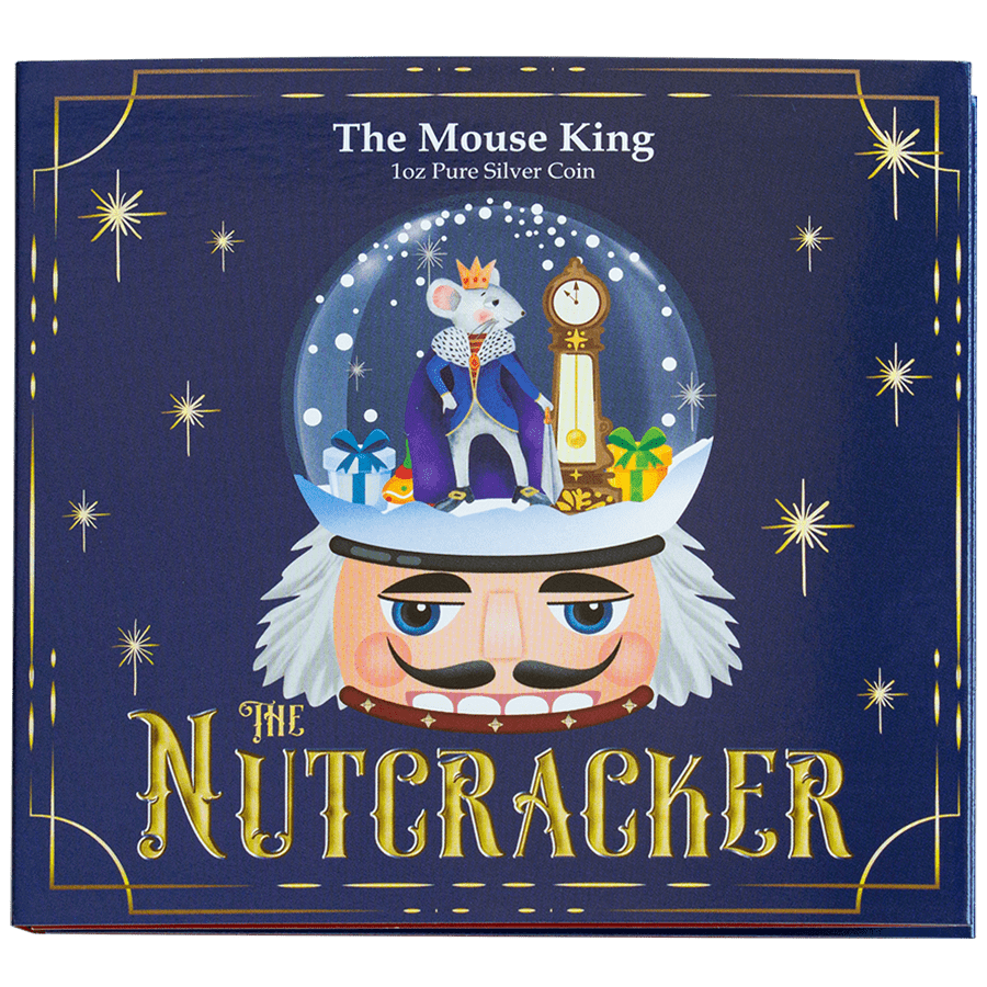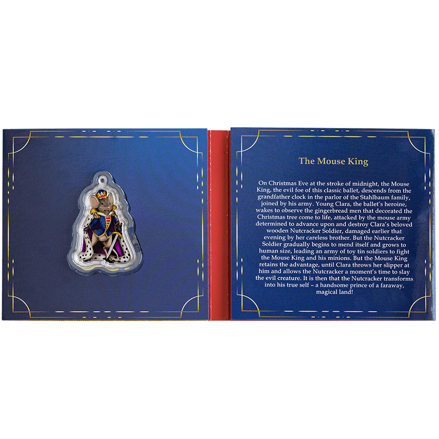 Entra nel fantastico mondo del balletto dello Schiaccianoci grazie alla nostra esclusiva moneta d’argento puro Mouse King (Re dei topi). Un prodotto in argento che rende omaggio all’amatissimo balletto natalizio, che narra le avventure della piccola Clara e di come lo Schiaccianoci si è trasformato in principe.