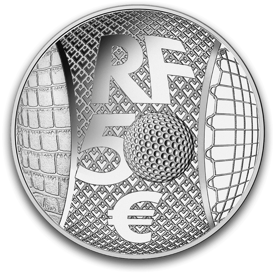 - Rovescio: progettato come una pallina da tennis, presenta dettagli che richiamano la pelle di coccodrillo, il tessuto di una polo e le corde di una racchetta. Il “50€” centrale include una pallina da golf all’interno dello “0”, in omaggio alla moglie di Lacoste, Simone, campionessa di golf.