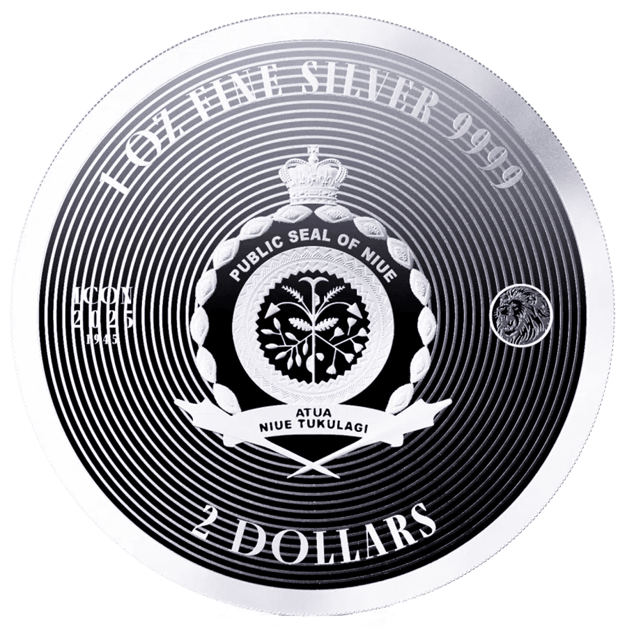 - Rovescio: presenta il valore nominale di 2 dollari, il Paese emittente “NIUE 2025” e lo stemma ufficiale di Niue.