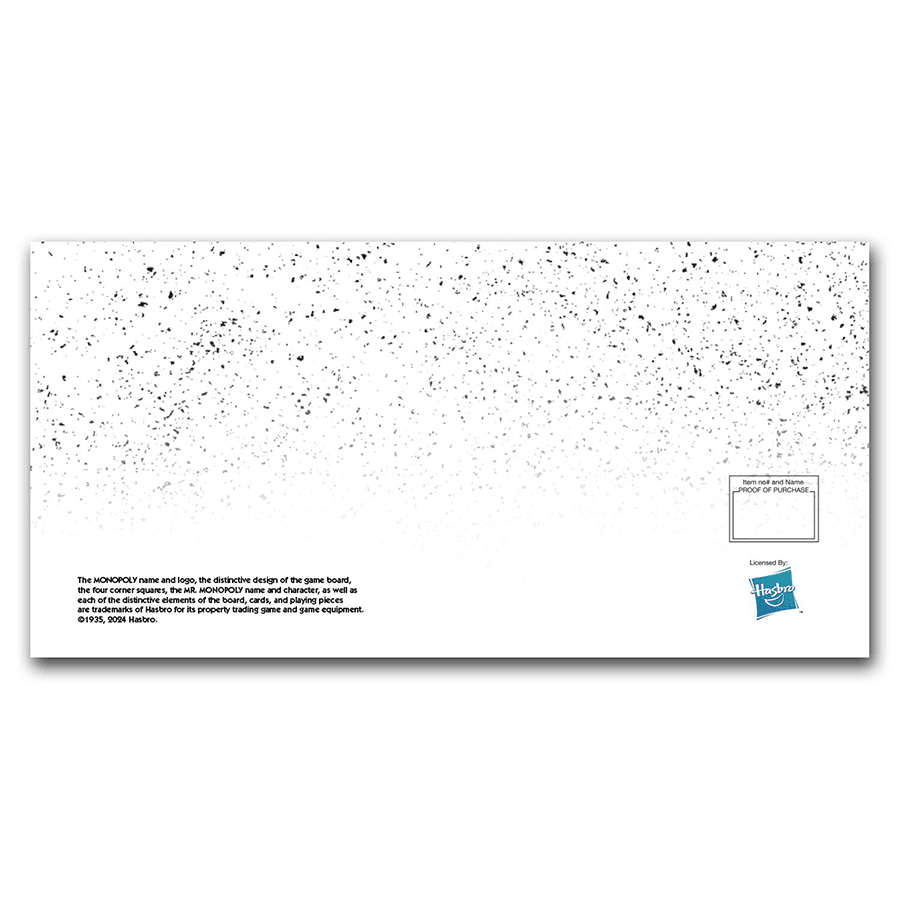- Rovescio: la parte posteriore rappresenta lo stemma ufficiale di Samoa, accompagnato dall’anno "2024" e dal valore nominale di "50 Tala". Un bordo decorato, che richiama i motivi eleganti dell’altro lato, circonda lo stemma per creare un design armonioso. Il marchio Monopoly in alto aggiunge un tocco giocoso e senza tempo, facendo di questo prodotto un connubio perfetto tra nostalgia e valore.
