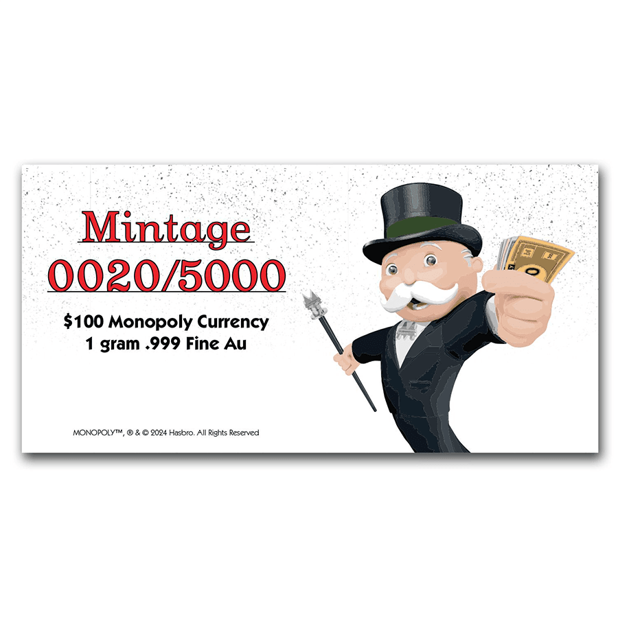 1 grammo Banconota Monopoly® in oro