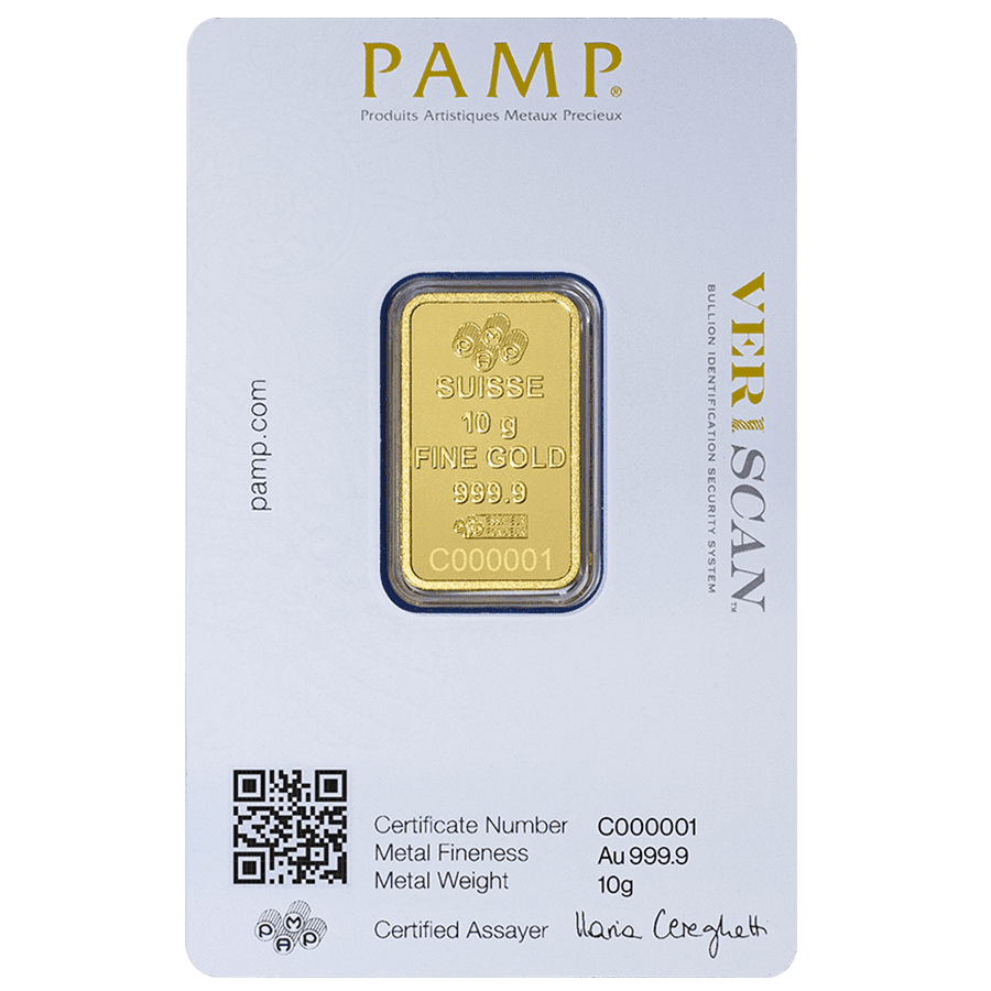 Il lingotto d’oro Lady Fortuna da 10 g misura 15,8 mm di larghezza e 26,5 mm di lunghezza ed è realizzato in oro puro al 999,9‰. Ogni lingotto è corredato da un certificato CertiPAMP™.