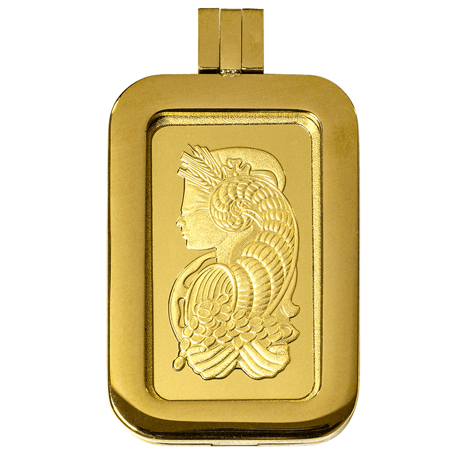 In secondo luogo, il lingotto d’oro Lady Fortuna vanta un design altamente riconosciuto e prestigioso, in grado di aggiungere fascino a qualsiasi collezione. Si contraddistingue dai lingotti d’oro tradizionali per via della sua cornice d’acciaio, che consente di portarlo come ciondolo, facendone un pezzo unico.
