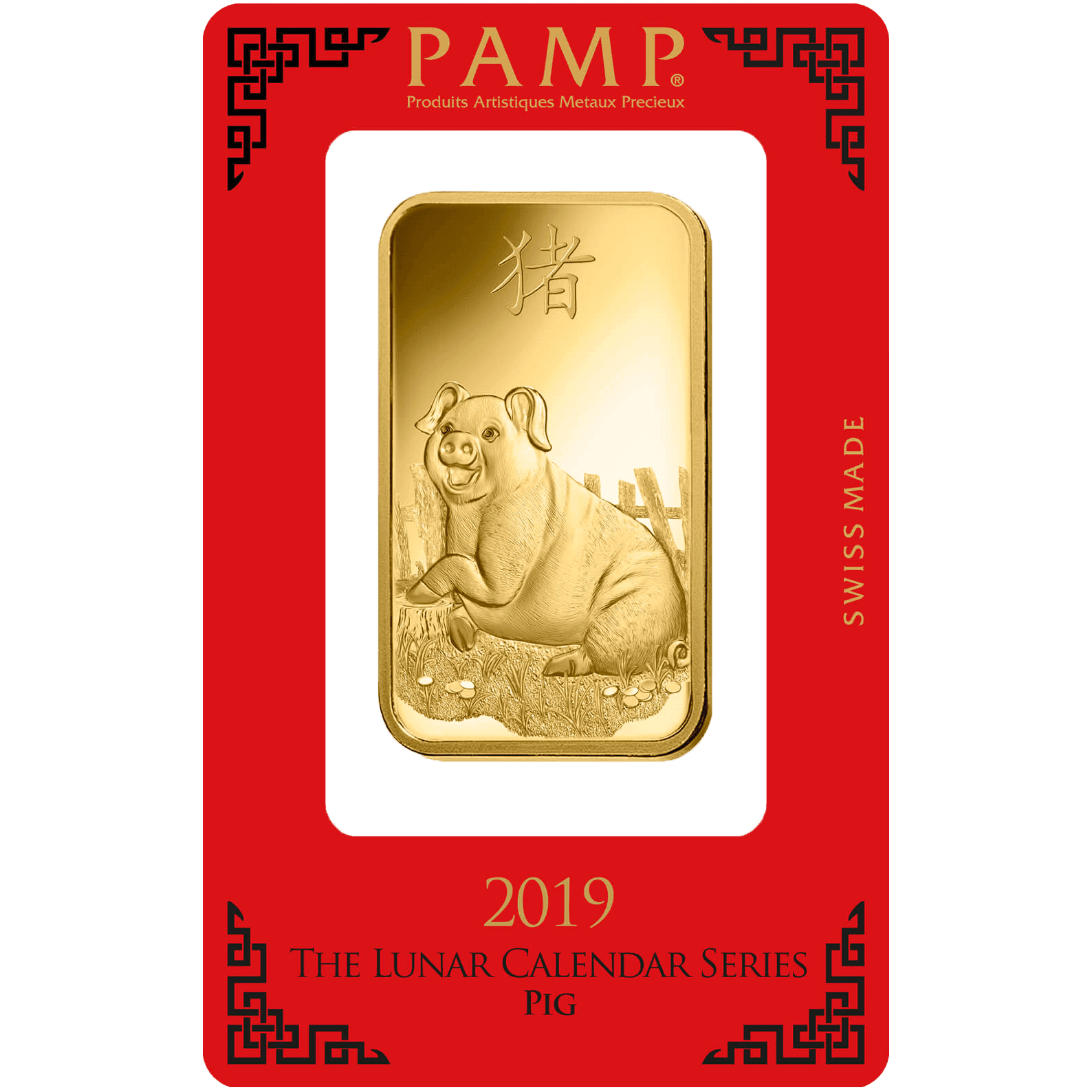 In commemoration of the Chinese New Year, the 2019 edition of PAMP’s popular Lunar Calendar Series celebrates the Year of the Pig with a stunning ingot design that brilliantly reflects the qualities attributed to the animal throughout Chinese culture: compassion, generosity and intelligence. The pig is also strongly associated with wealth and abundance, and the Chinese anticipate a time of peace, joy and great financial prosperity throughout its year.