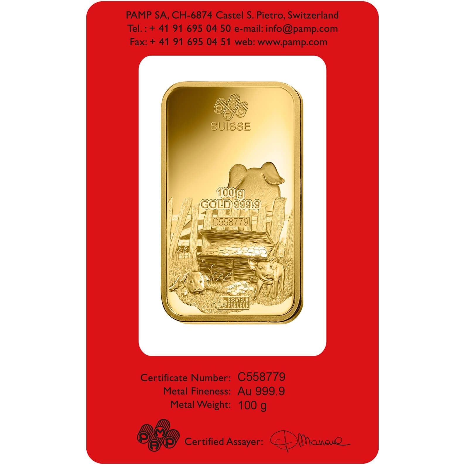 100 grammi Lingottino d'Oro - PAMP Suisse Lunar Maiale
