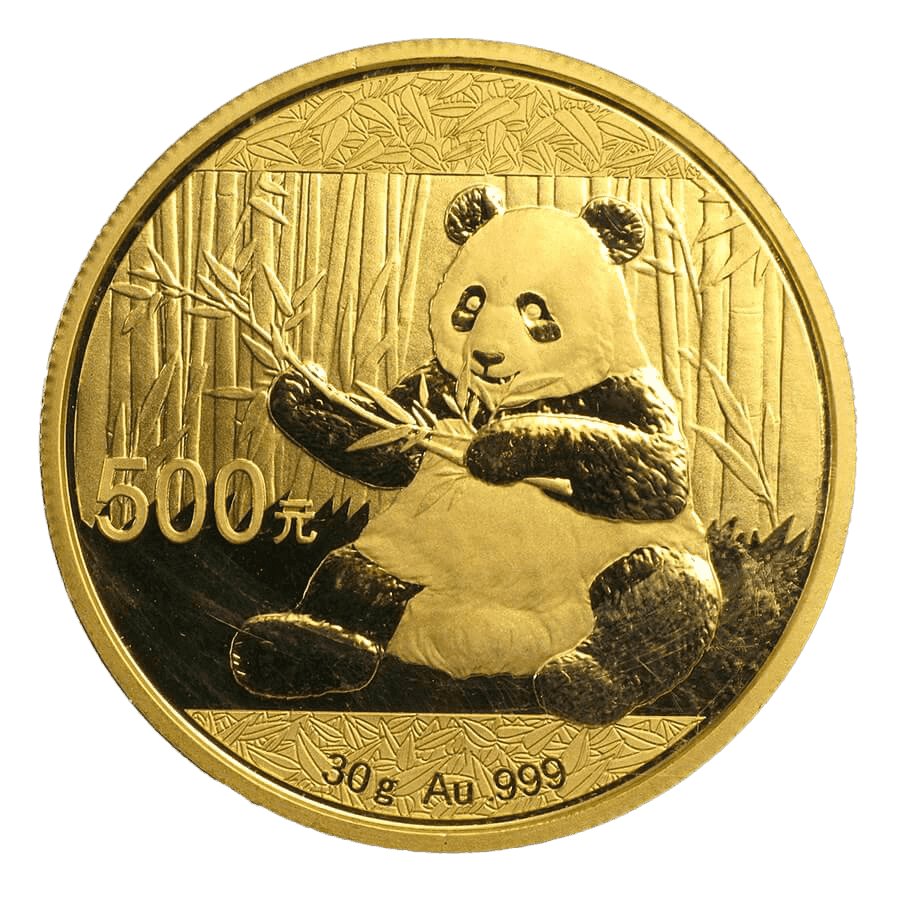 Questa moneta unica di 30 grammi (g), o 0,96 once (oz), è prodotta dalla Repubblica Popolare Cinese. A differenza di molte monete sul mercato, la moneta d'oro Panda cambia ogni anno. La moneta varia ogni anno sul dritto, ma il rovescio illustra costantemente l'animale raro che abita in Cina: "Il Grande Panda".