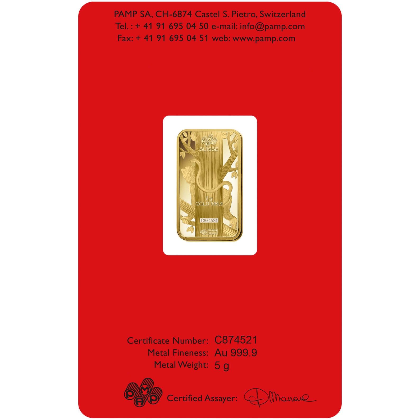 5 grammi Lingottino d'Oro - PAMP Suisse Lunar Scimmia