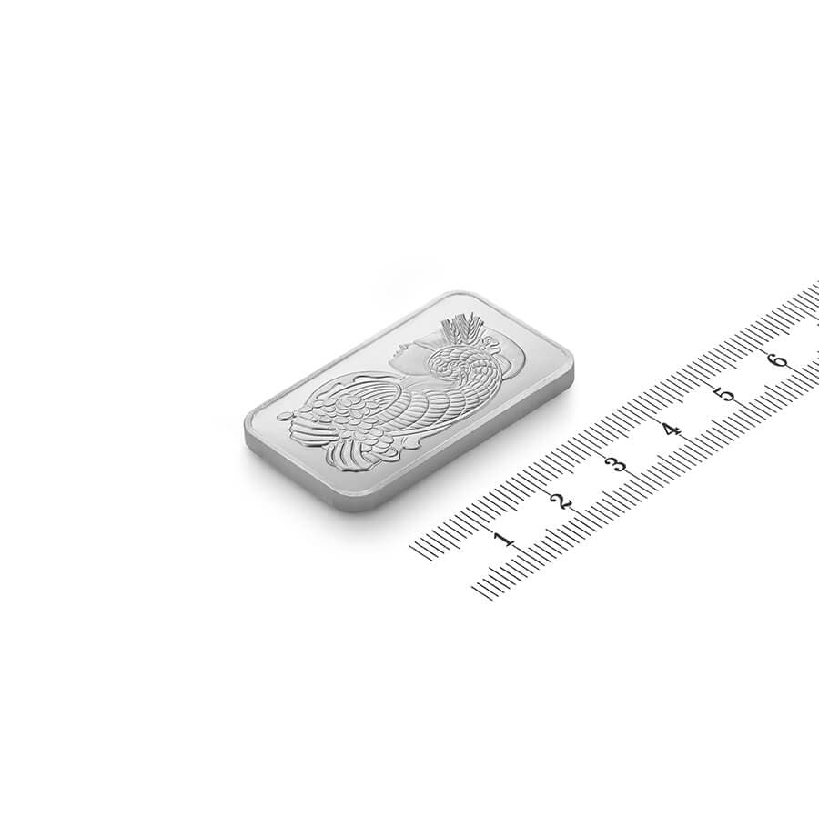 Questo lingotto di palladio di un'oncia (oz), o 3,11 grammi (g), è prodotto da PAMP Suisse. È splendidamente decorato con la famosa dea romana Fortuna, figlia di Giove.