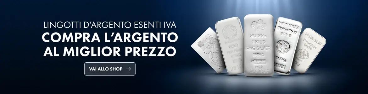 Nota: se scegli di farti consegnare i prodotti in argento, platino o palladio ESENTI IVA, verrà applicata l’IVA, oltre alle spese di spedizione e assicurazione. Ricordati di verificare l’aliquota IVA in vigore nel tuo paese di residenza prima di procedere alla spedizione.